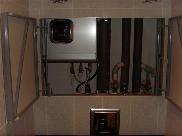 расположены манометры давления, фильтры очистки, бойлер, счетчики воды и гребенки, не считая самих элементов навесного унитаза, но как видите все это можно прекрасно скрыть и открывать в любое время, когда это действительно необходимо.